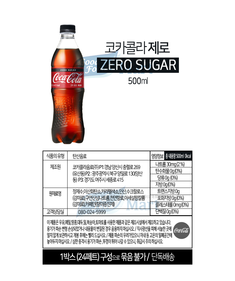 ÄÚÄ«Äݶó Á¦·Î½´°Å 500ml (24Æê) ¹«·á¹è¼Û