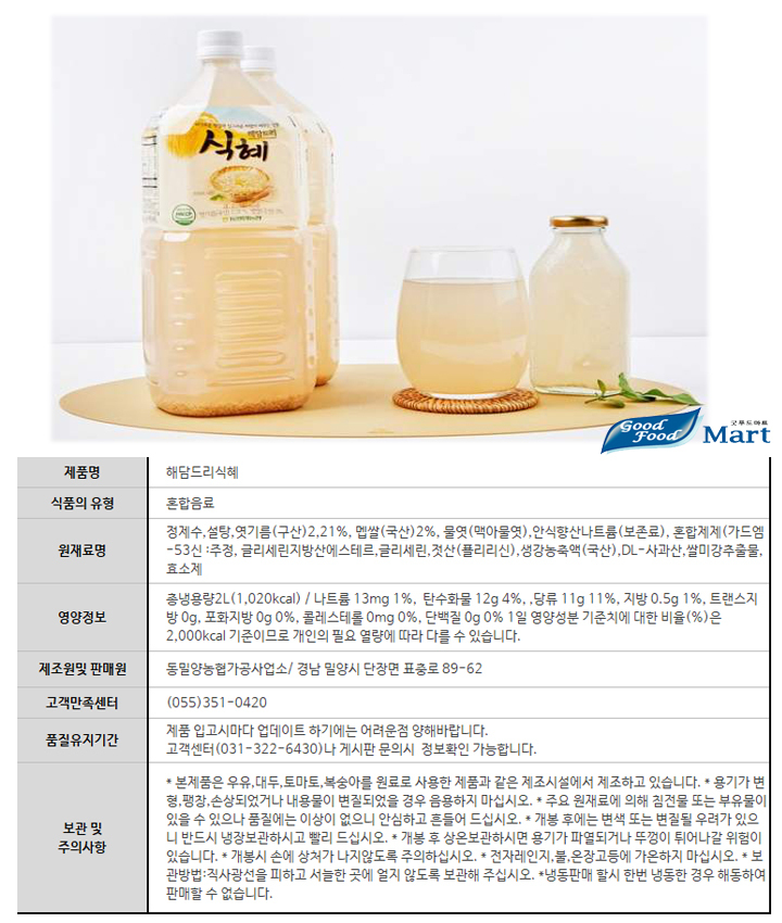 À½·á > ÀüÅë/°Ç°­À½·á > ½ÄÇý&¼öÁ¤°ú > ³óÇù ÇØ´ãµå¸®½ÄÇý 2L (9°³) ¹«·á¹è¼Û